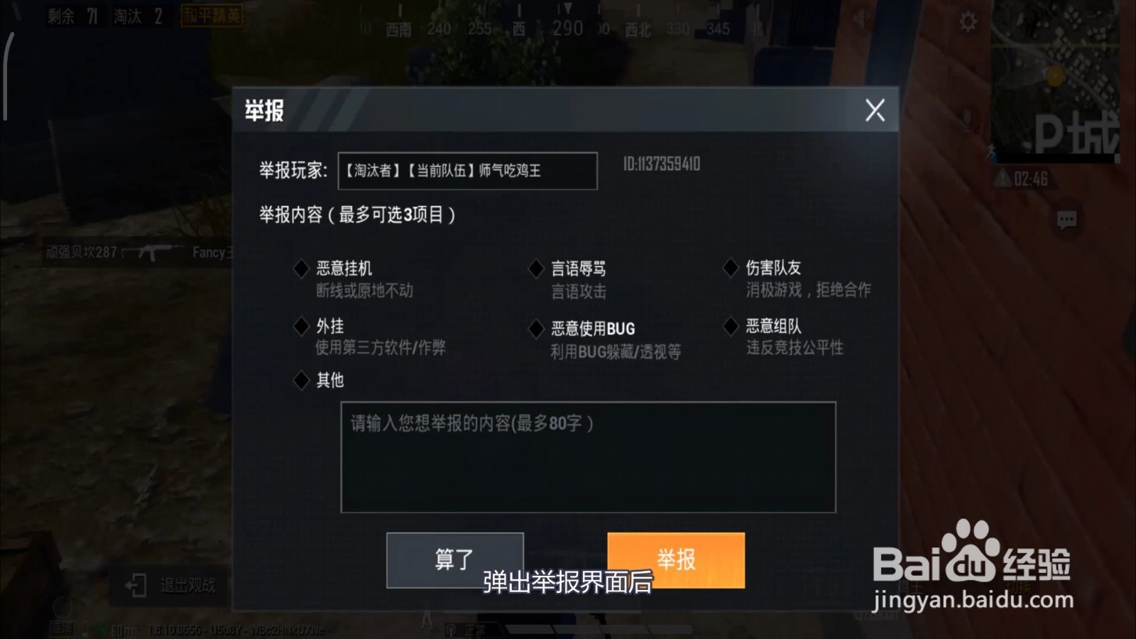 1.游戏结束后 ,玩家可以看到一个【举报】选项,官网不同之处在于进入途径不同